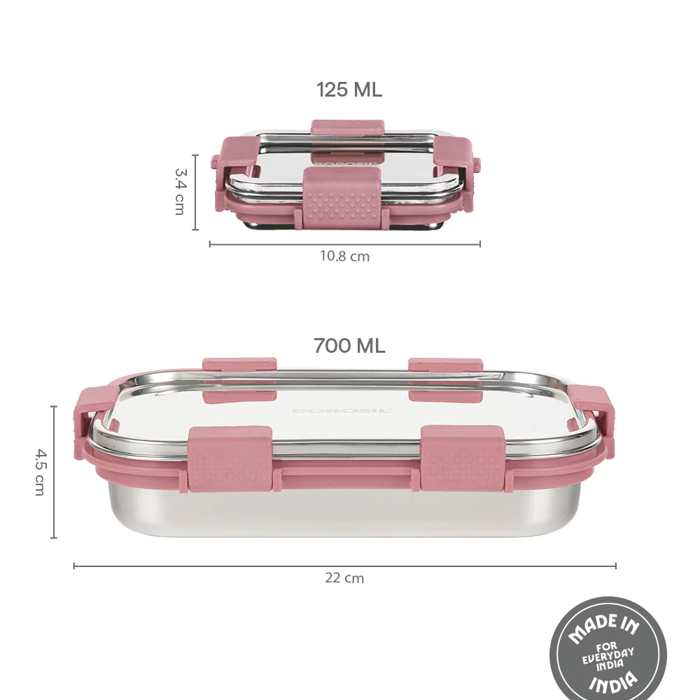 Carry a part of home with you wherever you go with this stylish lunch box in a vibrant green shade. Pack a wholesome meal like aloo parathas with curd and a side of pickles in this two-container set, ensuring freshness and flavour throughout your day.