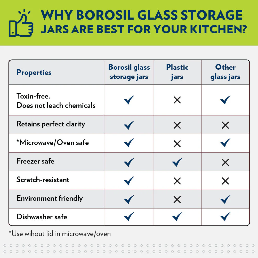 Borosil Tip: Put the jar directly in the oven to freshen up snacks when you have guests drop in!